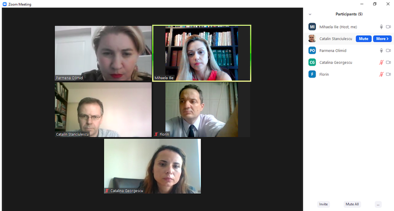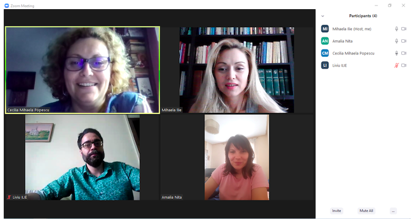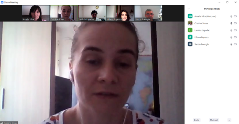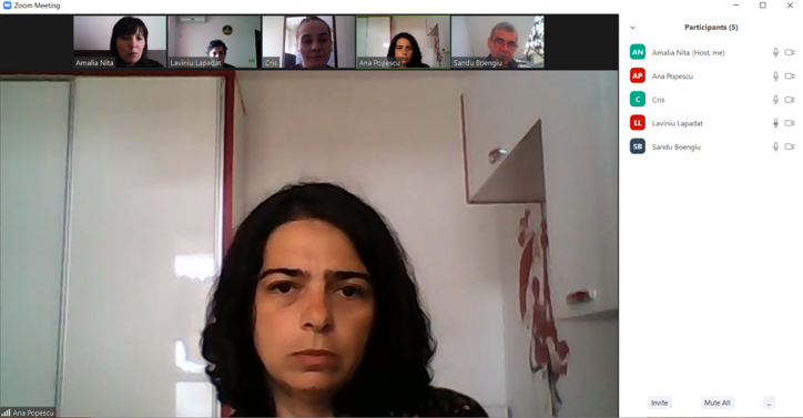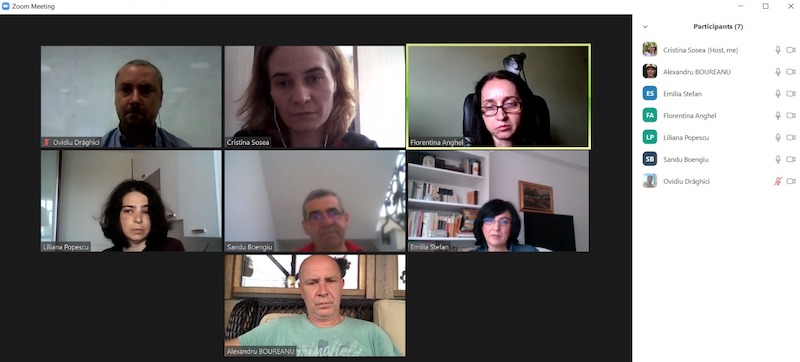 În data de 17 iunie 2020, la ora 16, a avut loc ședința echipei de implementare a proiectului, în mediul online, folosind platforma ZOOM. Mai jos sunt prezentate câteva instantanee: