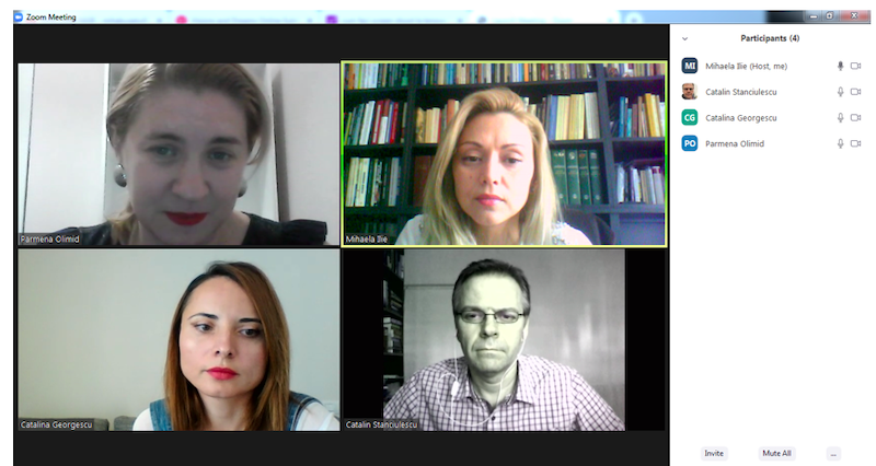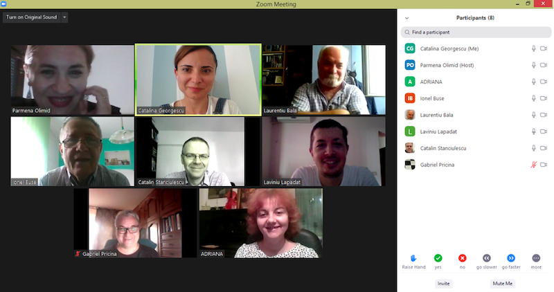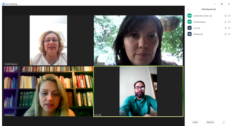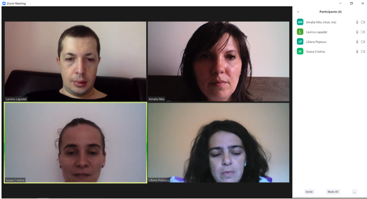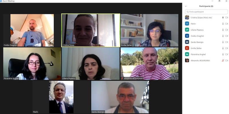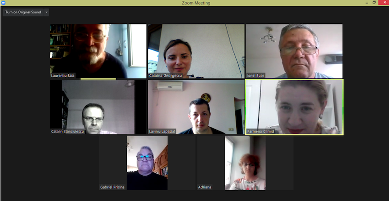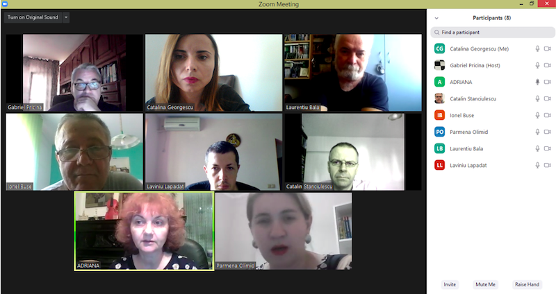 În data de 29 iulie 2020, la ora 16, a avut loc ședința echipei de implementare a proiectului, în mediul online, folosind platforma ZOOM. Mai jos sunt prezentate câteva instantanee: