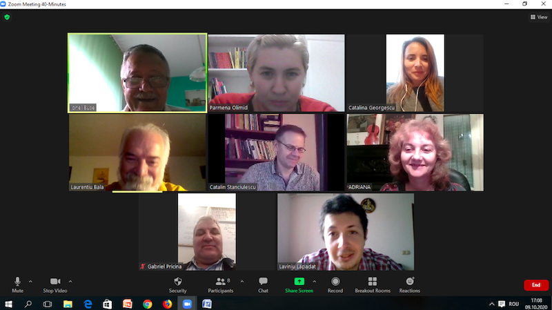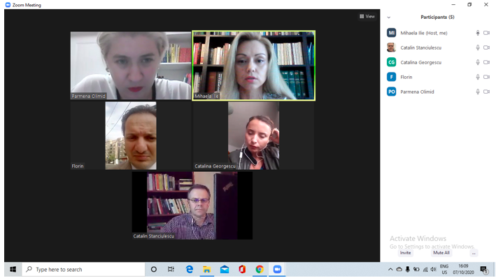 În data de 30 septembrie 2020, la ora 16, a avut loc ședința echipei de implementare a proiectului, în mediul online, folosind platforma ZOOM. Mai jos sunt prezentate câteva instantanee: