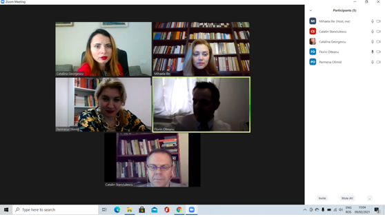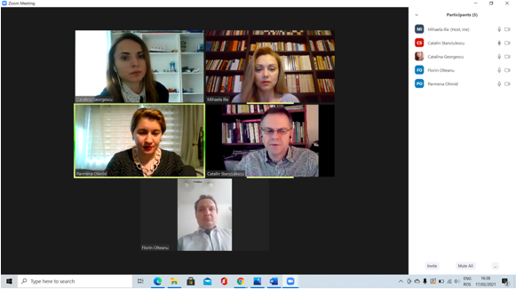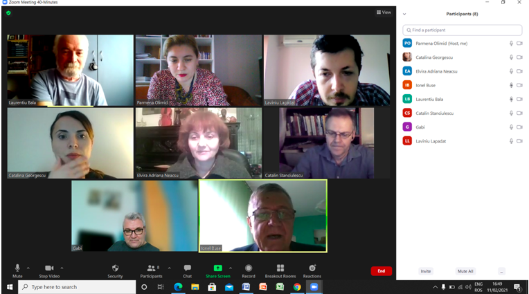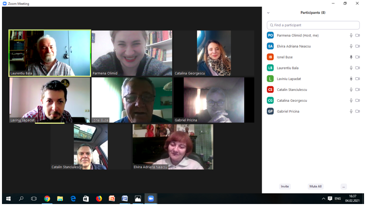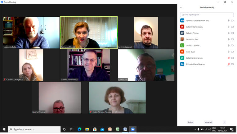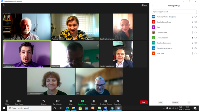 În data de 24 februarie 2021, a avut loc ședința echipei de implementare a proiectului, în mediul online, folosind platforma ZOOM. Mai jos sunt prezentate câteva instantanee: