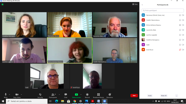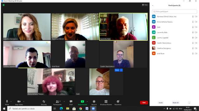 În data de 23 iunie 2021, a avut loc ședința echipei de implementare a proiectului, în mediul online, folosind platforma ZOOM. Mai jos sunt prezentate câteva instantanee: