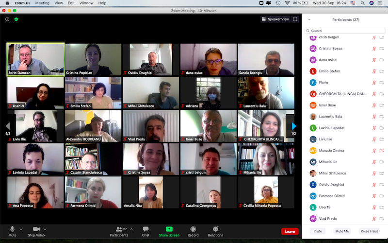 În data de 30 septembrie 2020, la ora 16, a avut loc ședința echipei de implementare a proiectului, în mediul online, folosind platforma ZOOM. Mai jos sunt prezentate câteva instantanee: