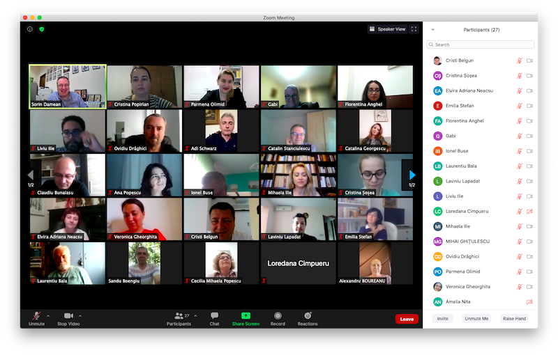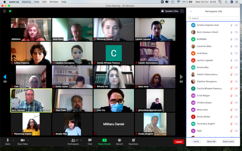 În data de 28 octombrie 2020, la ora 16, a avut loc ședința echipei de implementare a proiectului, în mediul online, folosind platforma ZOOM. Mai jos sunt prezentate câteva instantanee: