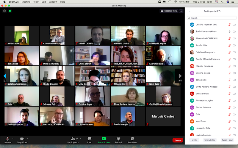În data de 24 februarie 2021, a avut loc ședința echipei de implementare a proiectului, în mediul online, folosind platforma ZOOM. Mai jos sunt prezentate câteva instantanee: