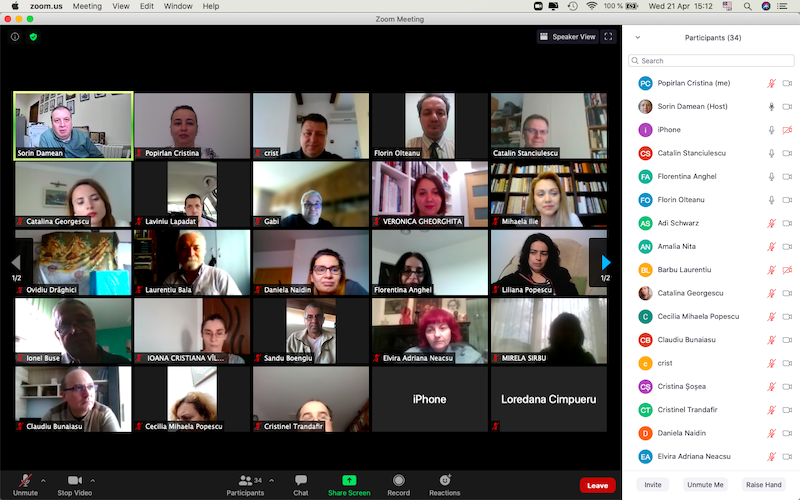 În data de 21 aprilie 2021, a avut loc ședința echipei de implementare a proiectului, în mediul online, folosind platforma ZOOM. Mai jos sunt prezentate câteva instantanee: