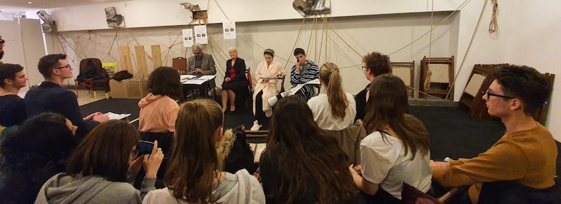 13 noiembrie 2019 începând cu orele 16.00 #Activități de motivare a studenților, coeziune a grupului #vizionare spectacol-lectură susținut de elevii Colegiului Național „Frații Buzești” la Teatrul Național Craiova, Sala ‘Ia te uitș’ #vizionare expoziție foto Alai Hub Craiova #spectacole #pasiuni ale studenților: fotografie #design #video.