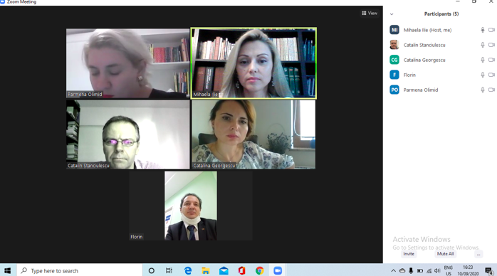 În data de 10 septembrie 2020, a avut loc întâlnirea de lucru lucru Expert 5 grup țintă studenți și Mentori (8, 9, 10, 11), în mediul online, folosind platforma ZOOM. Mai jos sunt prezentate câteva instantanee:
