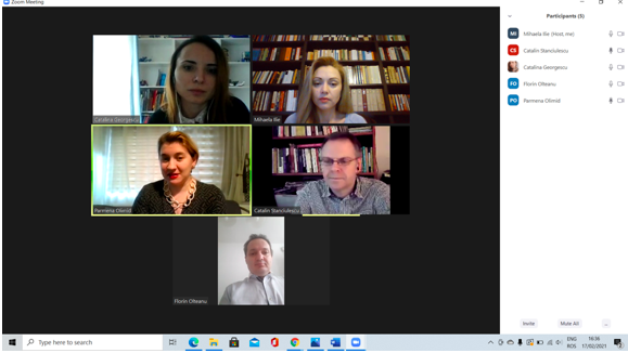 În data de 17 februarie 2021, a avut loc întâlnirea de lucru lucru Expert 5 grup țintă studenți și Mentori (8, 9, 10, 11), în mediul online, folosind platforma ZOOM. Mai jos sunt prezentate câteva instantanee: