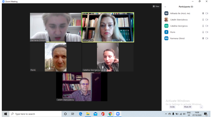 În data de 7 octombrie 2020, a avut loc întâlnirea de lucru lucru Expert 5 grup țintă studenți și Mentori (8, 9, 10, 11), în mediul online, folosind platforma ZOOM. Mai jos sunt prezentate câteva instantanee: