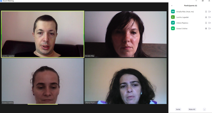 În data de 16 iulie 2020, a avut loc întâlnirea de lucru lucru Expert 6 grup țintă studenți și Mentori (1, 2, 3, 4), în mediul online, folosind platforma ZOOM. Mai jos sunt prezentate câteva instantanee:
