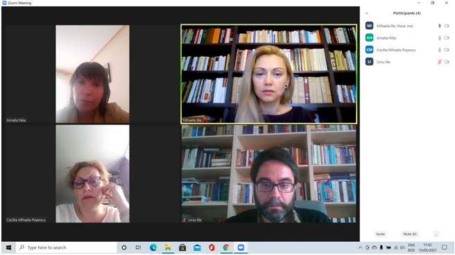 În data de 13 mai 2021, a avut loc întâlnirea de lucru Experți grup țintă studenți, în mediul online, folosind platforma ZOOM. Mai jos sunt prezentate câteva instantanee: Share: Conf. univ. dr. Cristina POPÎRLAN View all posts by Conf. univ. dr. Cristina POPÎRLAN