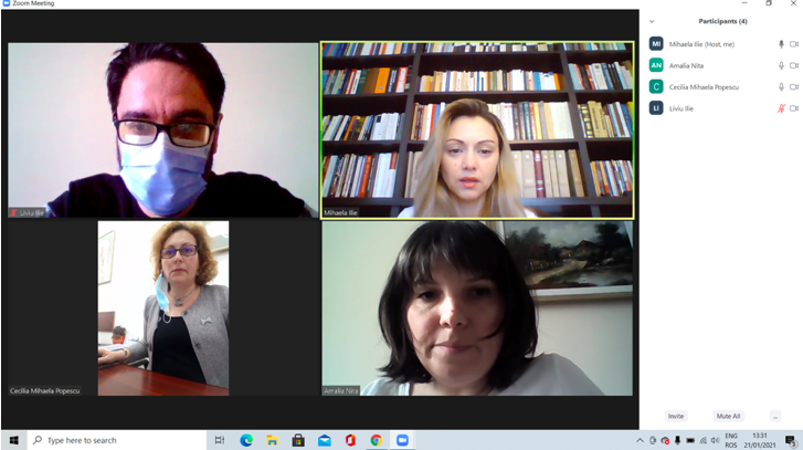 În data de 21 ianuarie 2021, a avut loc întâlnirea de lucru Experți grup țintă studenți, în mediul online, folosind platforma ZOOM. Mai jos sunt prezentate câteva instantanee:
