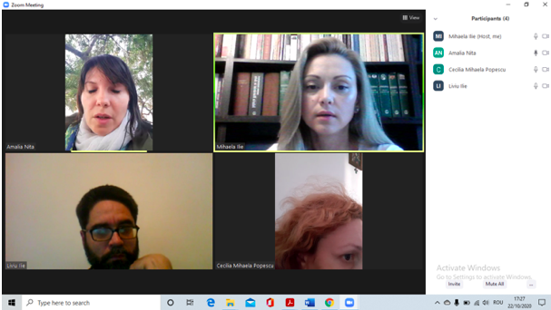 În data de 22 octombrie 2020, a avut loc întâlnirea de lucru Experți grup țintă studenți, în mediul online, folosind platforma ZOOM. Mai jos sunt prezentate câteva instantanee: Share: Conf. univ. dr. Cristina POPÎRLAN View all posts by Conf. univ. dr. Cristina POPÎRLAN