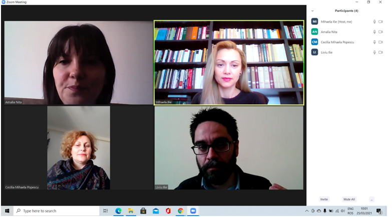 În data de 25 martie 2021, a avut loc întâlnirea de lucru Experți grup țintă studenți, în mediul online, folosind platforma ZOOM. Mai jos sunt prezentate câteva instantanee: Share: Conf. univ. dr. Cristina POPÎRLAN View all posts by Conf. univ. dr. Cristina POPÎRLAN