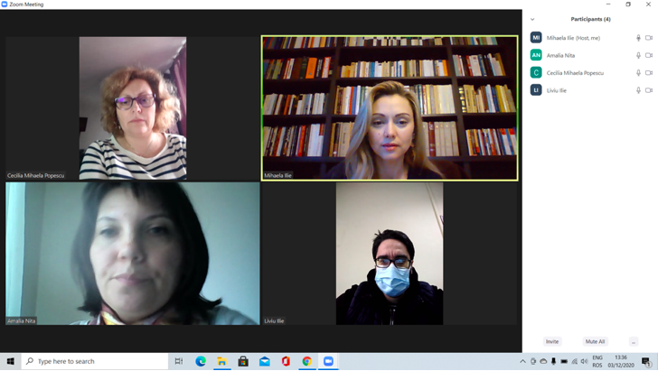În data de 3 decembrie 2020, a avut loc întâlnirea de lucru Experți grup țintă studenți, în mediul online, folosind platforma ZOOM. Mai jos sunt prezentate câteva instantanee: Share: Conf. univ. dr. Cristina POPÎRLAN View all posts by Conf. univ. dr. Cristina POPÎRLAN