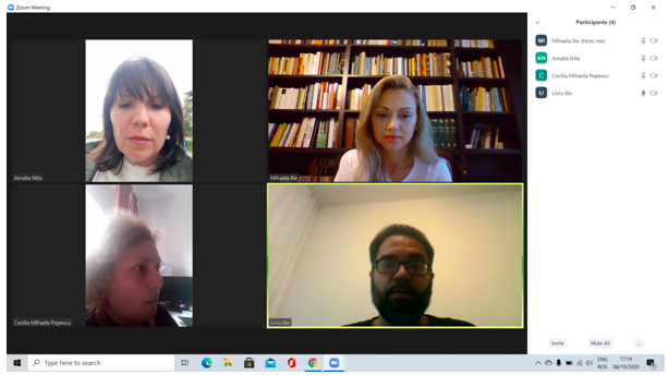 În data de 8 octombrie 2020, a avut loc întâlnirea de lucru Experți grup țintă studenți, în mediul online, folosind platforma ZOOM. Mai jos sunt prezentate câteva instantanee: Share: Conf. univ. dr. Cristina POPÎRLAN View all posts by Conf. univ. dr. Cristina POPÎRLAN