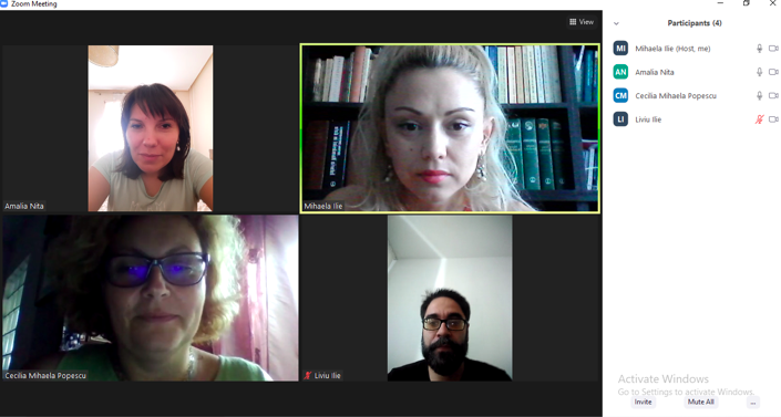 În data de 9 septembrie 2020, a avut loc întâlnirea de lucru Experți grup țintă studenți, în mediul online, folosind platforma ZOOM. Mai jos sunt prezentate câteva instantanee: