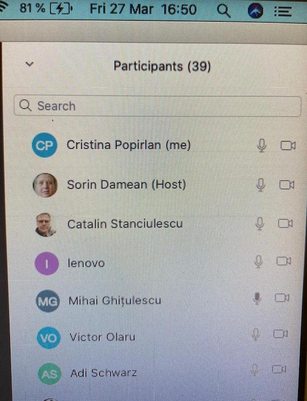 În data de 27 martie 2020, la ora 16, a avut loc ședința echipei de implementare a proiectului, în mediul online, folosind platforma ZOOM. Mai jos sunt prezentate câteva instantanee: Share: Conf. univ. dr. Cristina POPÎRLAN View all posts by Conf. univ. dr. Cristina POPÎRLAN