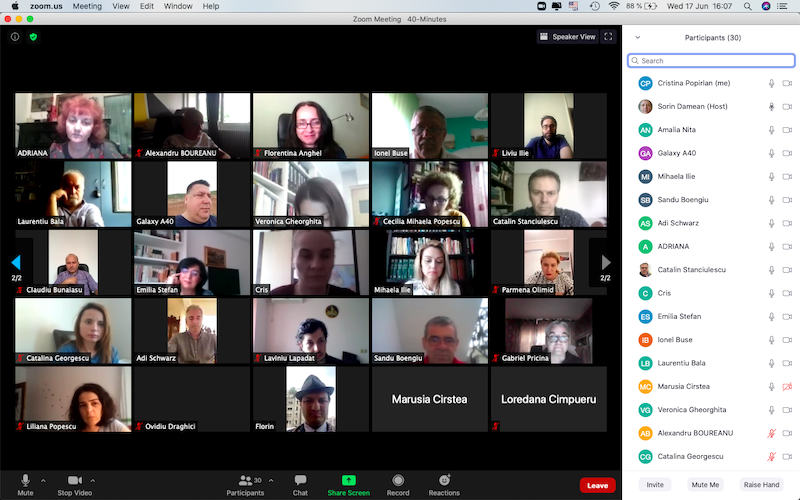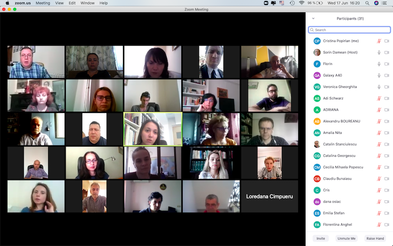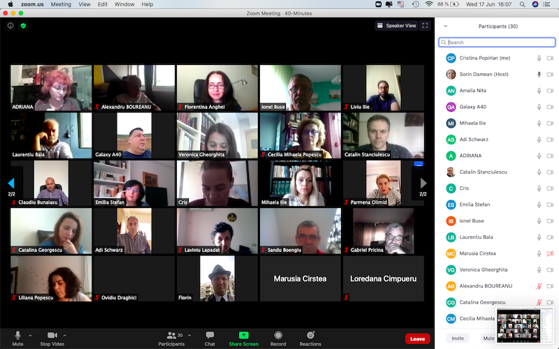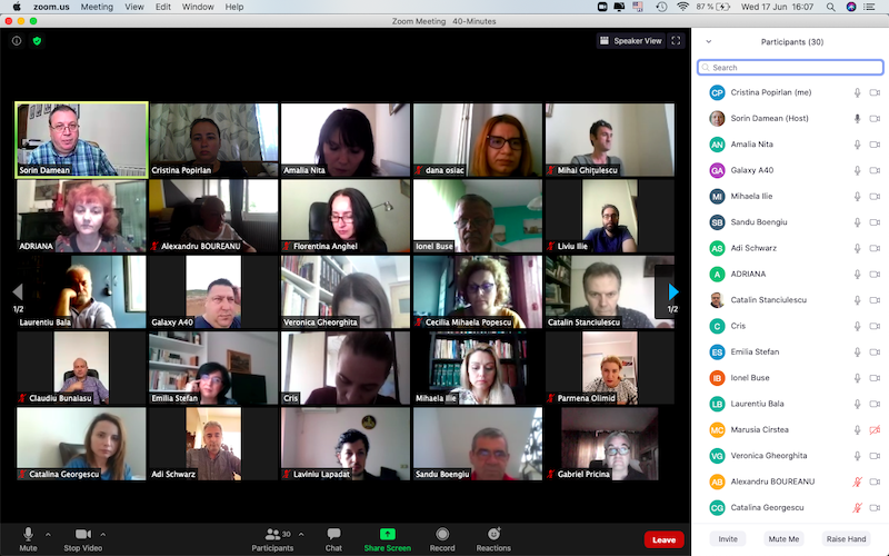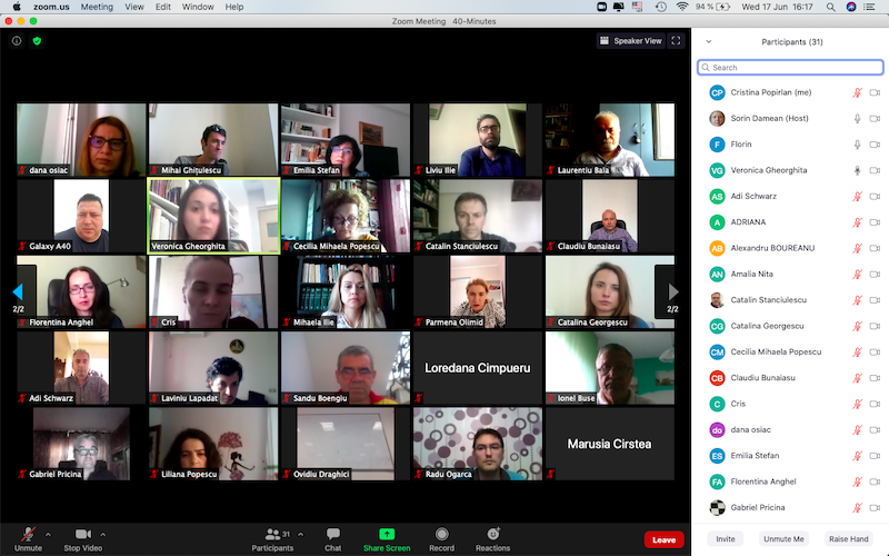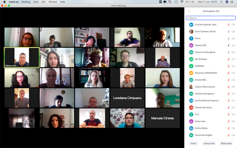 În data de 17 iunie 2020, la ora 16, a avut loc ședința echipei de implementare a proiectului, în mediul online, folosind platforma ZOOM. Mai jos sunt prezentate câteva instantanee: Share: Conf. univ. dr. Cristina POPÎRLAN View all posts by Conf. univ. dr. Cristina POPÎRLAN