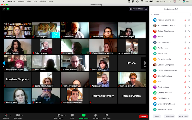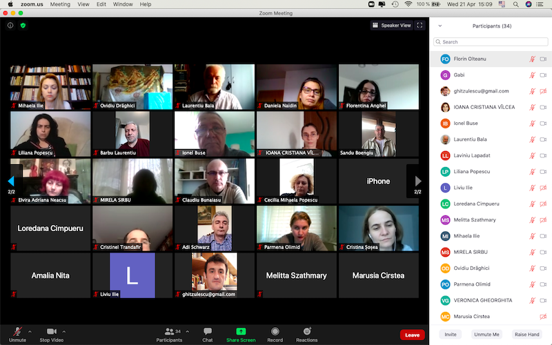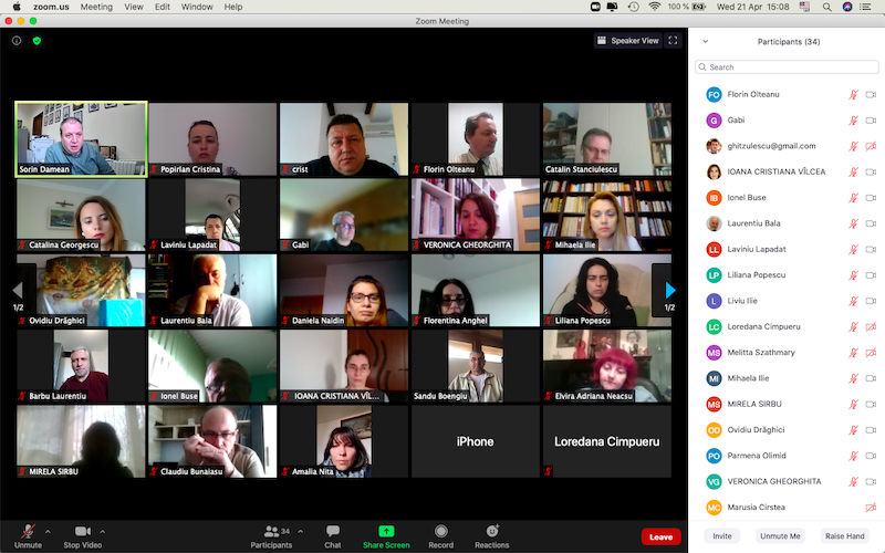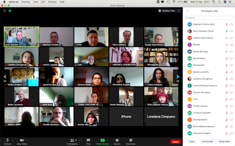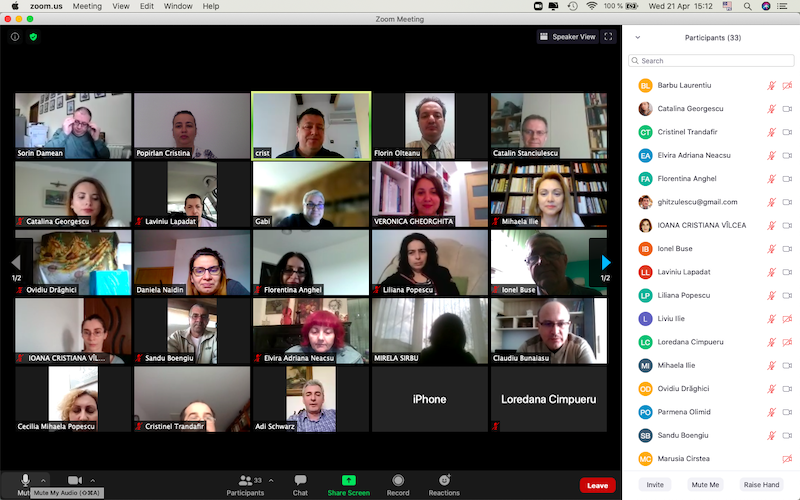 În data de 21 aprilie 2021, a avut loc ședința echipei de implementare a proiectului, în mediul online, folosind platforma ZOOM. Mai jos sunt prezentate câteva instantanee: