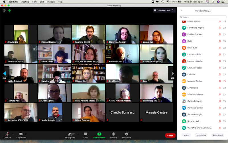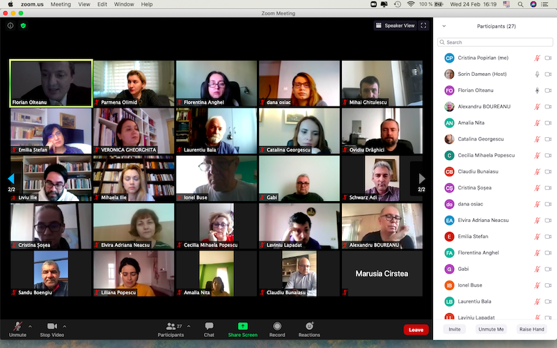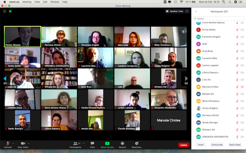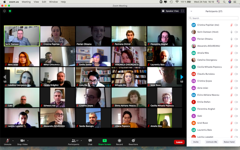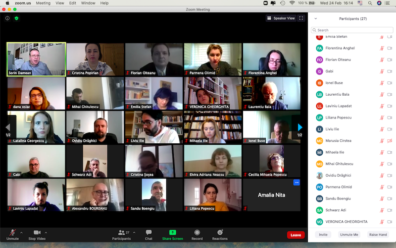 În data de 24 februarie 2021, a avut loc ședința echipei de implementare a proiectului, în mediul online, folosind platforma ZOOM. Mai jos sunt prezentate câteva instantanee: Share: Conf. univ. dr. Cristina POPÎRLAN View all posts by Conf. univ. dr. Cristina POPÎRLAN