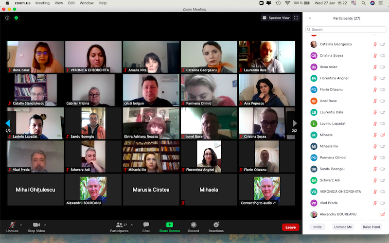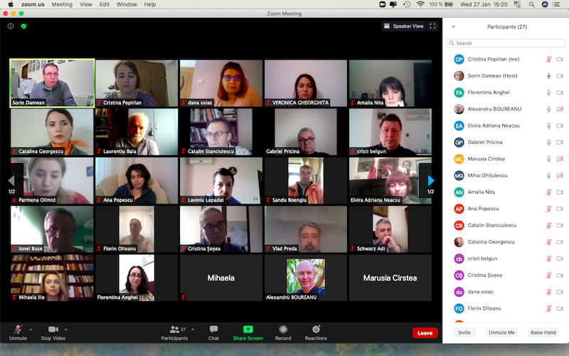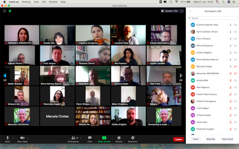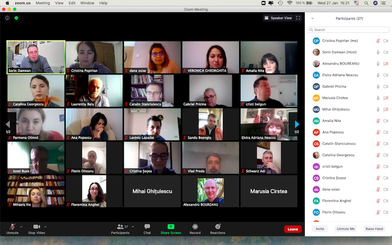 În data de 27 ianuarie 2021, la ora 15, a avut loc ședința echipei de implementare a proiectului, în mediul online, folosind platforma ZOOM. Mai jos sunt prezentate câteva instantanee: Share: Conf. univ. dr. Cristina POPÎRLAN View all posts by Conf. univ. dr. Cristina POPÎRLAN