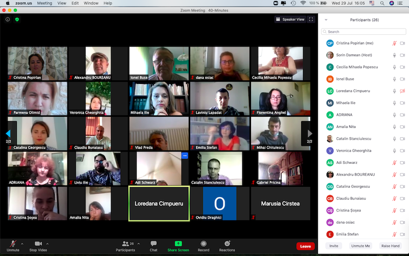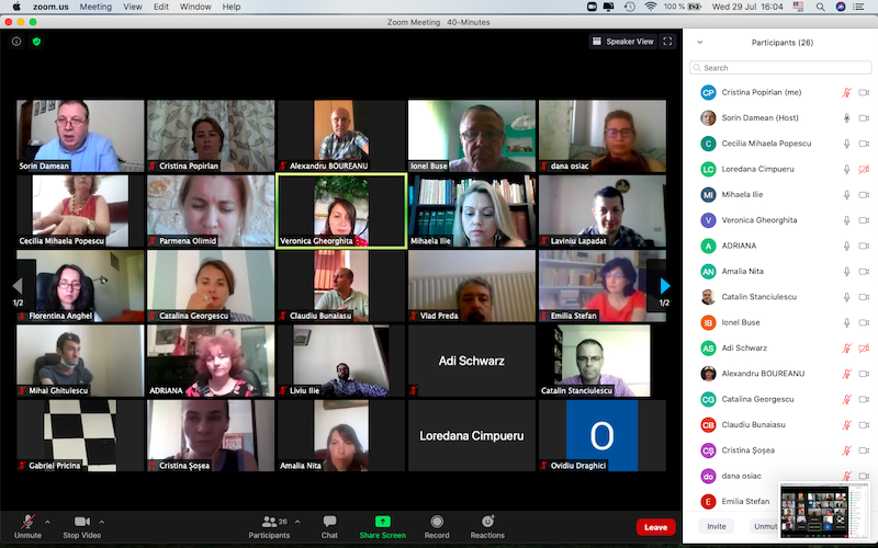 În data de 29 iulie 2020, la ora 16, a avut loc ședința echipei de implementare a proiectului, în mediul online, folosind platforma ZOOM. Mai jos sunt prezentate câteva instantanee: Share: Conf. univ. dr. Cristina POPÎRLAN View all posts by Conf. univ. dr. Cristina POPÎRLAN