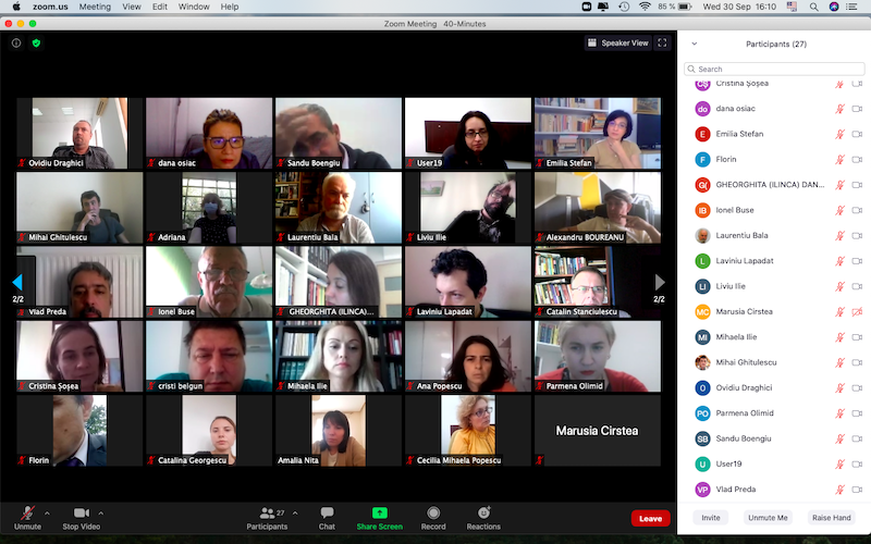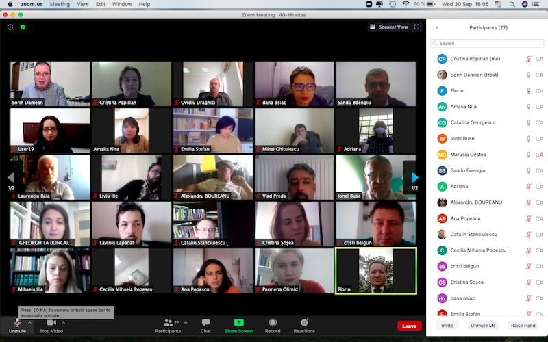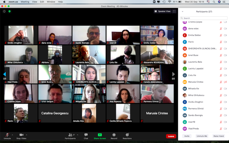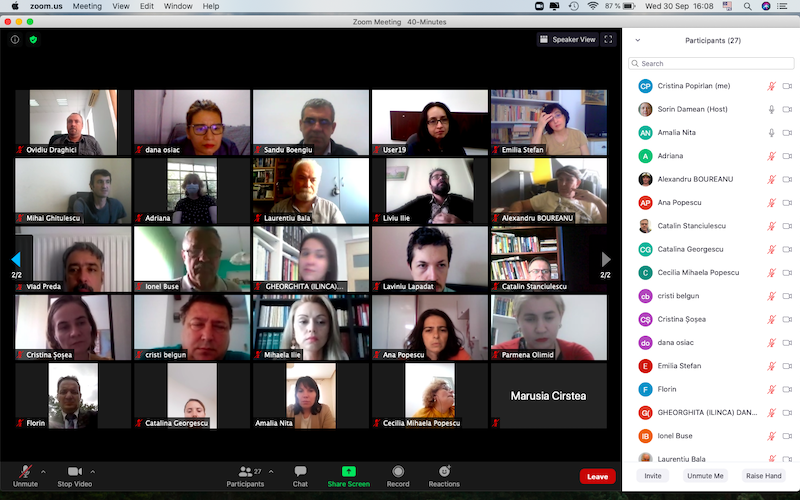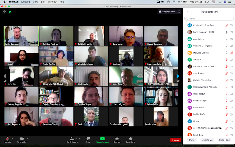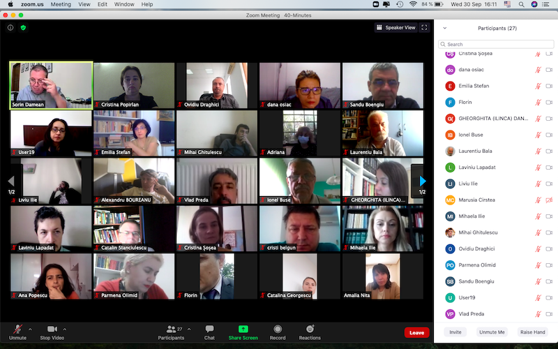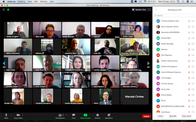 În data de 30 septembrie 2020, la ora 16, a avut loc ședința echipei de implementare a proiectului, în mediul online, folosind platforma ZOOM. Mai jos sunt prezentate câteva instantanee: